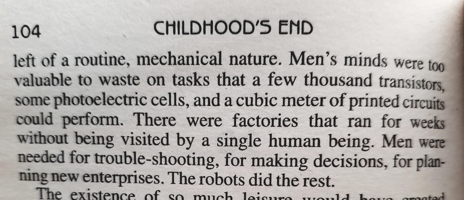 This is the second Arthur C. Clarke novel I’ve read (the first being Rendezvous With Rama), and I’ve been blown away by both. For some reason I expected Clarke’s books to be a bit drier and more dated, but his is some of the most exciting and mind-expanding science fiction I’ve ever read. I should have expected no less from the mind behind 2001: A Space Odyssey. Perhaps I had that prejudice because in some older sci-fi books, the science and ideas become outdated or the writing style does (or it was never any good to begin with). Especially with hard science fiction, which Clarke is often categorized as, the science is prioritized over the story, craft, and characters, so once the science itself becomes dated, the book does as well. But this is NOT the case with Arthur C. Clarke. Though there is some “hard science” in Childhood’s End, it was also quite weird, speculative, and philosophical (like 2001). Clarke’s ideas remain highly relevant and he is an exquisite composer of prose. This novel particularly features so many brilliant lines of philosophical insight, such as: “There were some things that only time could cure. Evil men could be destroyed, but nothing could be done with good men who were deluded.”