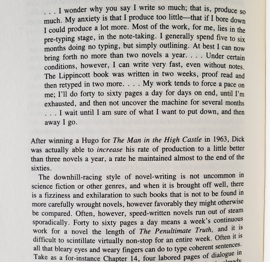 The afterward by science fiction writer Thomas M. Disch was my favorite part of the book. Disch explains how Dick wrote The Penultimate Truth as a “downhill skier, moving fast, never looking back.” PKD reportedly wrote the entire novel in just two weeks. I’m all for authors making money and doing what they need to do to get by, but imagine if, instead of rushing to write six mediocre novels in 1964, PKD took his time to write two great novels. The result might have been what happened two years later in 1966 when he wrote Do Androids Dream of Electric Sheep? and Ubik.